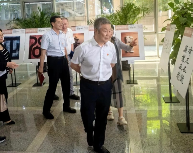 628日下午,赵长禄书记、王云鹏校长等一行人在新主楼会议中心参观了此次作品展。