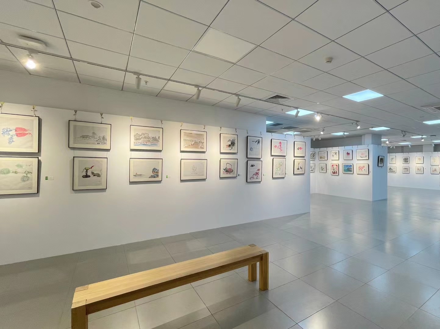 本次联展以“以美启航,以美润心”为主题,包括《中国水墨画技法》《海报设计与创作》《图形创意设计与制作》《丝网版画技法》《透视与空间》《版式创意与应用》等课程,包含有绘画、海报、文创等类型作品,集中展示了百余名学生的创作作品。