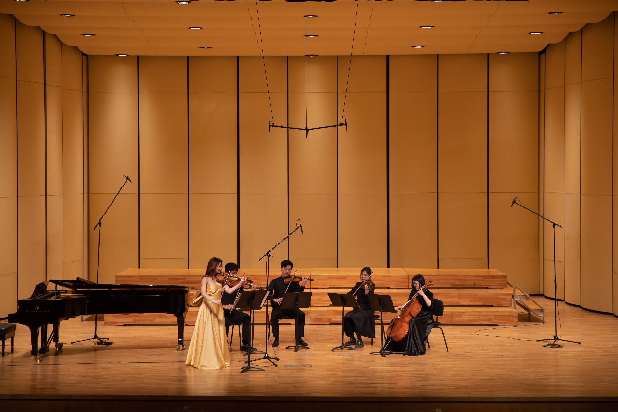 石慧老师携海淀区青少年活动管理中心合唱团、首都师范大学合唱团、北航学生交响乐团木管五重奏分别演奏了《军港之夜》、《美丽的南海》与《吉普赛之歌》,也带来了个人独奏《康康舞曲》与经典曲目《黄河颂》《保卫黄河》。