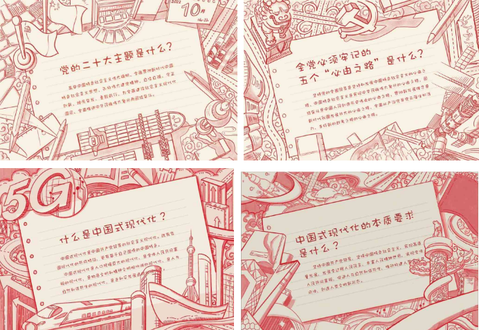 2022年是党和国家历史上极为重要的一年。政府工作报告指出,党的二十大胜利召开,描绘了全面建设社会主义现代化国家的宏伟蓝图。凯发k8 研究生2022级党支部积极响应上级号召,以实际行动学习党的二十大的重要讲话精神。通过理论结合实践的方式,让学生党员及入党积极分子学习党的二十大精神,领悟其中的内涵,并利用专业优势,将理论知识通过画笔的形式转为实践产出。