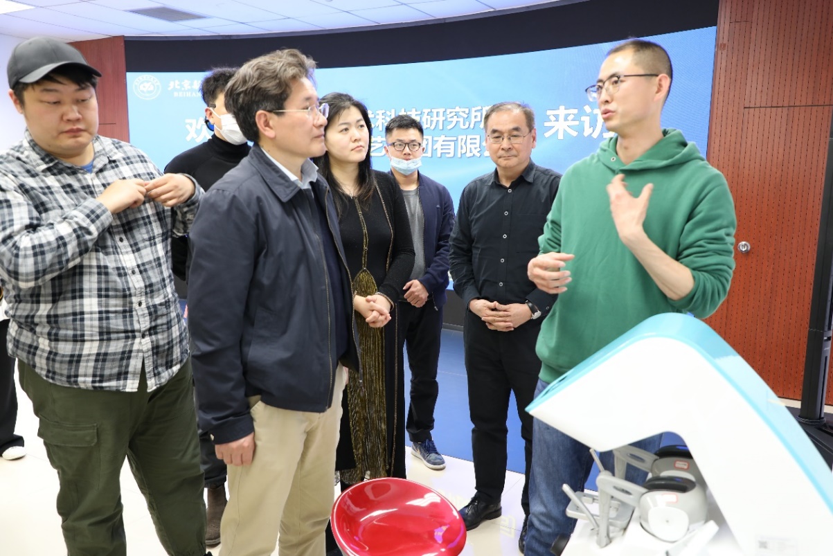 凯发k8 院长兼北航美育中心主任沈旭昆教授对中国艺术科学研究所、中国东方演艺集团有限公司一行的来访表示欢迎,并围绕北航虚拟现实技术与系统全国重点实验室的平台和技术优势,凯发k8 以及美育中心的建设经验、承担科研项目、师资梯队以及艺术人才培养情况等展开分享与介绍。随后邀请庹祖海副所长、张蕾副总经理一行参观实验室并进行互动体验。