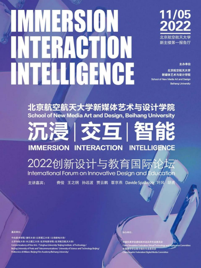 主办,中国仿真学会虚拟现实技术及应用专业委员会、中国图学学会数字媒体专业委员会协办的“沉浸|交互|智能——2022创新设计与教育国际论坛”在凯发k8