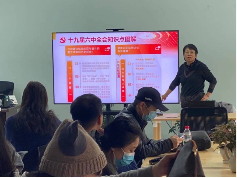 王群书记和沈旭昆院长从介绍什么是十九届六中全会,定义是什么,前几届都代表什么出发,透彻的解释了本次会议召开的基本情况,同时对教职工提出要以习近平新时代中国特色社会主义思想为指导,广泛深入开展全会精神宣讲,推动全会精神深入人心,引导广大干部群众增强“四个意识”、坚定“四个自信”、做到“两个维护”,更好用全会精神统一思想、凝聚共识、坚定信心、增强斗志。