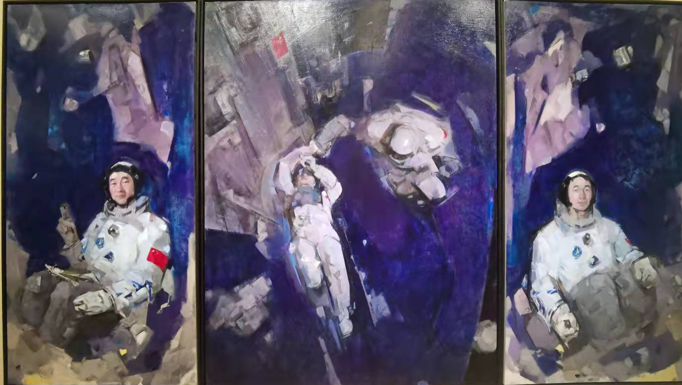 紧接着韩老师引导师生们来到科技事件展厅,主要表现近代以来中国的重大科技事件,这些作品是对中华民族伟大复兴之路上的里程碑事件进行艺术化的表现,观众被作品中的艺术性与科技事件所感染,更好的理解科技事件与国家前途,民族命运与人民幸福之间的紧密关系。其中包含我国高铁成就,以及成功研制两弹一星、南京长江大桥通车、南水北调、神舟5号载人飞船升空并安全返回等。