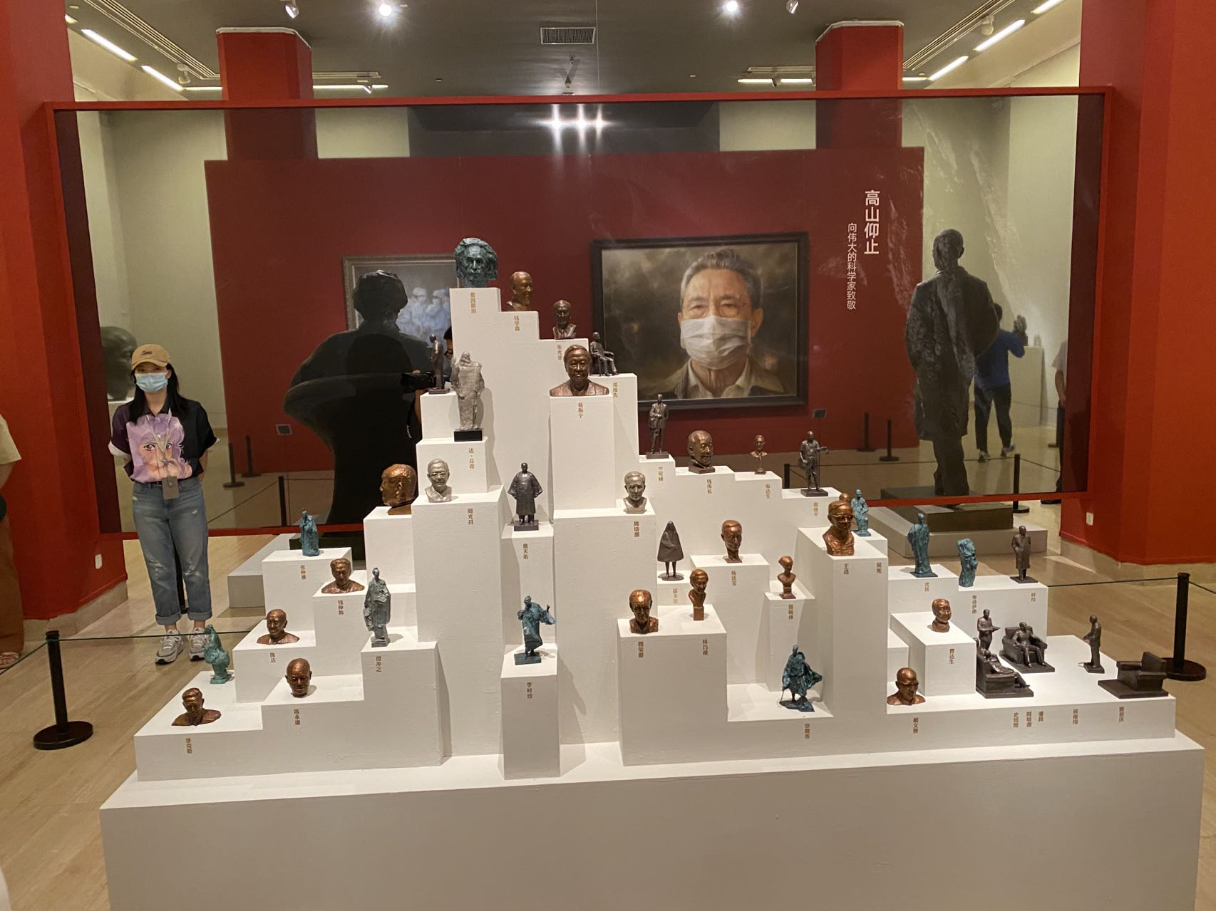 参观了系列精彩作品之后,韩老师特别介绍了吴为山馆长创作的雕塑作品《高山仰止》。这件作品是经吴为山馆长的系列作品3D扫描打印重构而成,展现了科技与艺术的关系相辅相成。作品代表吴为山馆长多年艺术积累与思考,把人文艺术与科学界的代表人物,集合成一座山的形状。