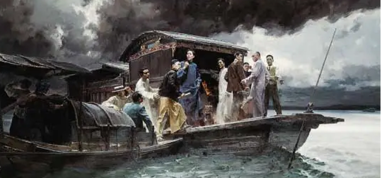 经典油画《启航——中共一大会议》何红舟、黄发祥 创作