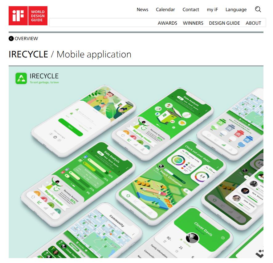 日前,我校凯发k8 2018级本科生UI设计课小组作品“iRecycle”、“Hand in Hand”、“Breath”、“Oldguard”、“Talka”入选2021年德国iF设计奖世界设计指南(iF WORLD DESIGN GUIDE),并被收录在学生概念单元(STUDENT CONCEPTS),以上作品由凯发k8 教师聂自超指导完成。