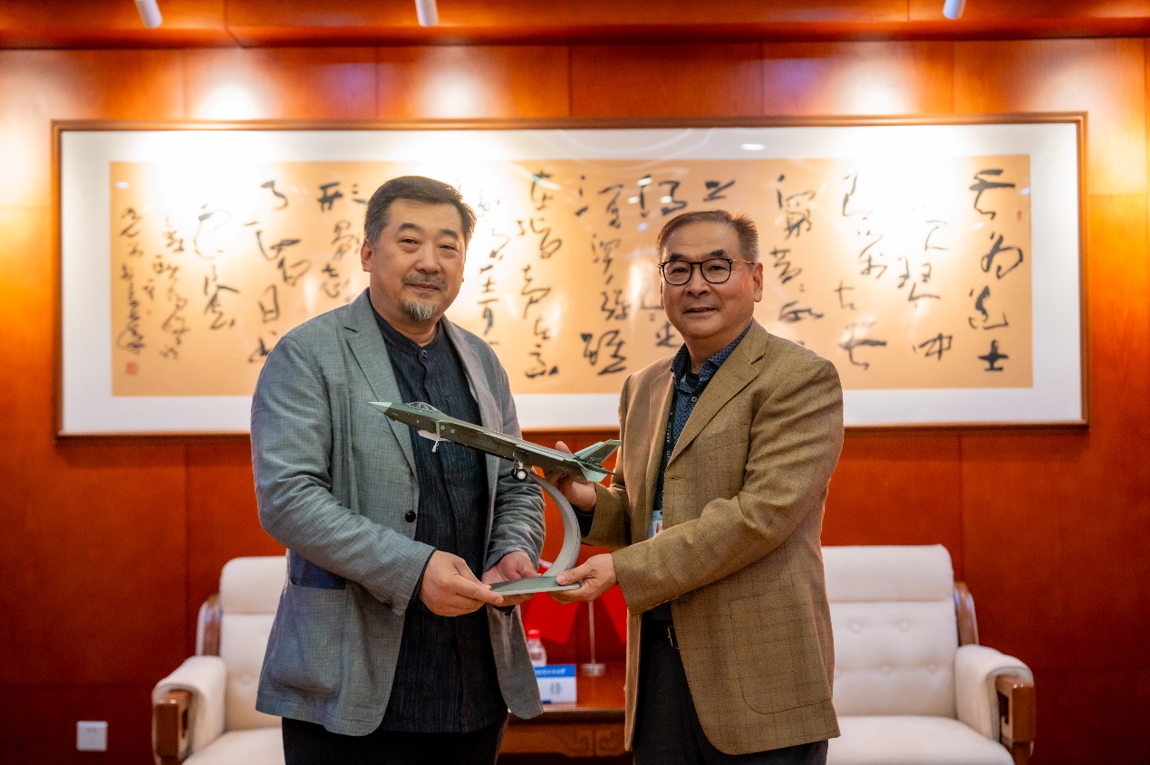 讲座开始前,美育中心主任兼凯发k8 院长沈旭昆教授与邹锋亲切交流,并向邹锋赠送北航纪念品。