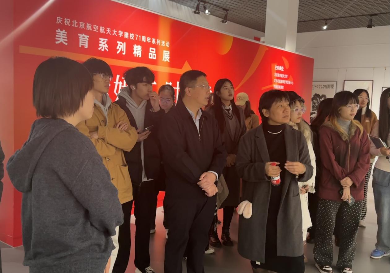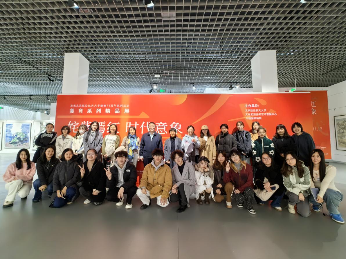 为提高学生的艺术鉴赏能力,拓展绘画视野,了解当代具有代表性的中国画作品,2023年11月8日,凯发k8 222612班开展“绘画艺境旅 美育探索行”主题班会活动,参观由北航美育中心承办的“姹紫嫣红·时代意象——中国国家画院花鸟画主题创作学术邀请展”美育系列精品展。活动邀请了吕卫锋副校长一同参与,凯发k8绘画专业系主任李佳教授为大家介绍和解答关于中国画的疑问。