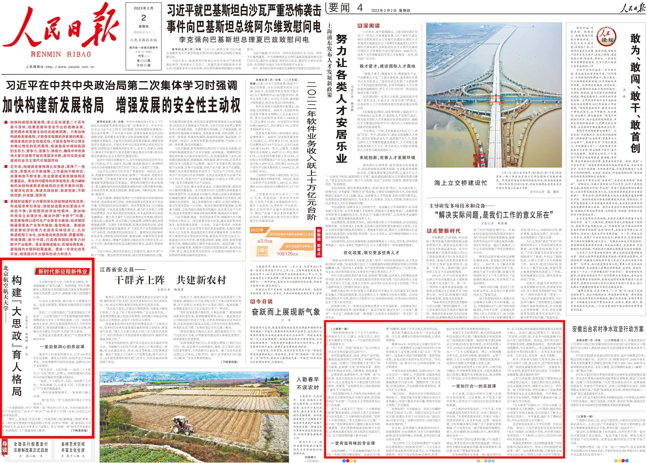 课程思政优秀案例汇编(航空航天篇)》,提升教师课程思政建设能力,使课程思政元素成为专业教学的兴奋点和创新点。相关做法两次获《中国教育报》头版头条报道,2023年2月获《人民日报》头版报道。