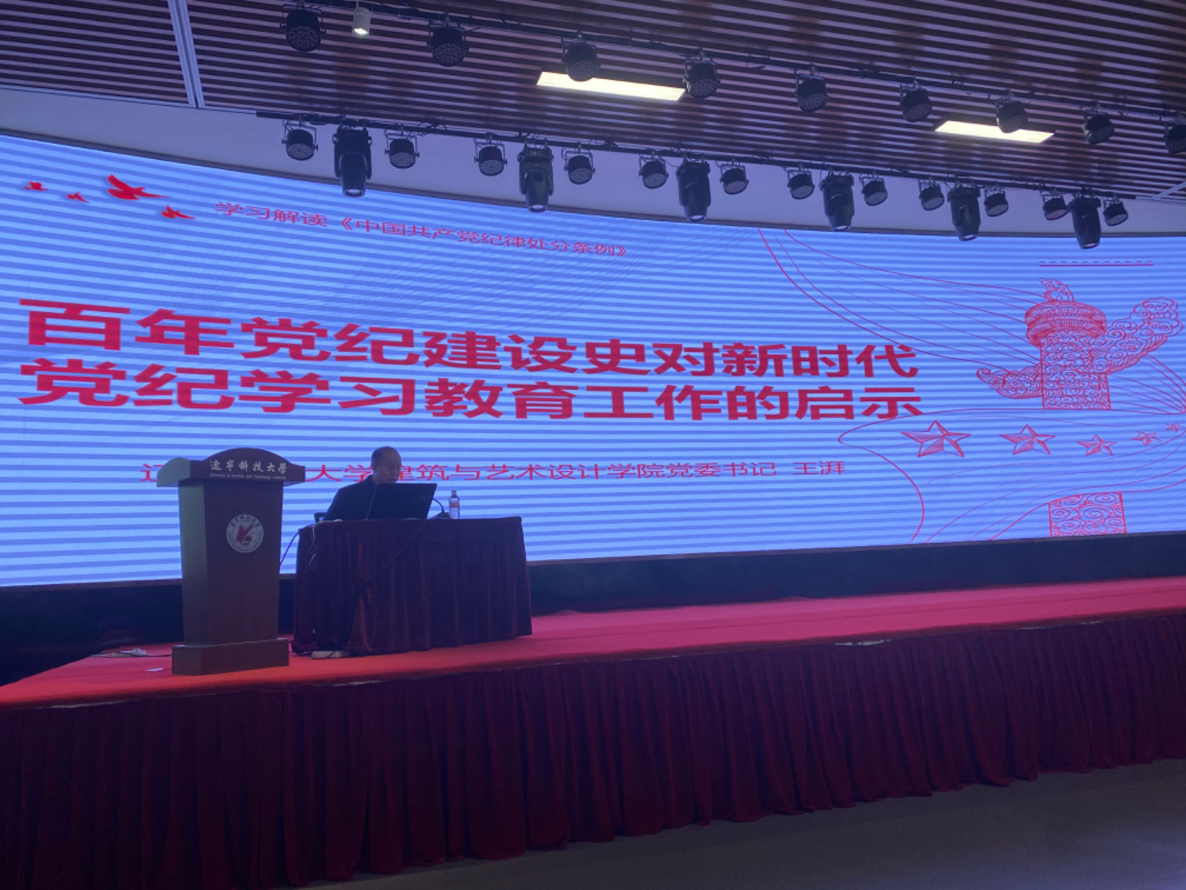 期间,两院党委共同举办了党委联合学习活动。凯发k8 党委书记王群进行了题为“树廉政风尚,做合格党员”的廉政教育专题学习,并对《中国共产党纪律处分条例》进行了深入解读。辽宁科技大学建筑与艺术设计凯发k8党委书记王湃则以“百年党纪建设史对新时代党纪学习教育工作的启示”为主题进行了党课讲授。两位书记的党课内容深入浅出,数据详实,内容丰富,对与会师生党员产生了深远的影响。