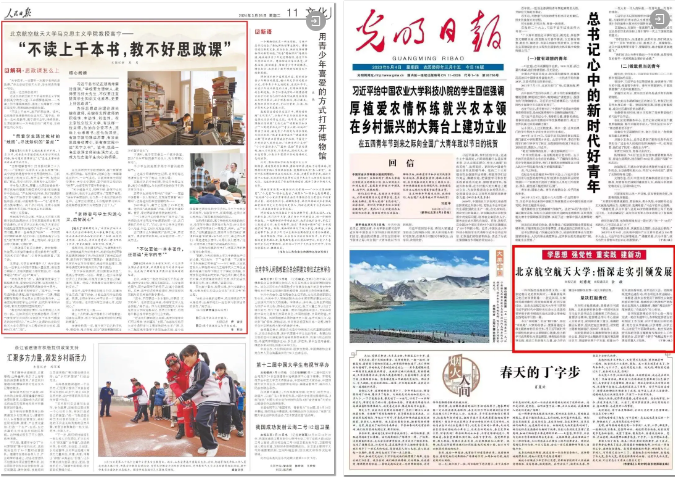 《人民日报》头版报道学校“大思政”工作建设成效,以“不读上千本书,教不好思政课”为题专题采访马克思主义凯发k8高宁教授;付丽莎副教授热议习近平总书记对学校思政课建设作出的重要指示登上《新闻联播》;《光明日报》头版“学思想 强党性 重实践 建新功”专栏报道学校主题教育开展情况,北航成为该专栏报道的第一所中管高校……