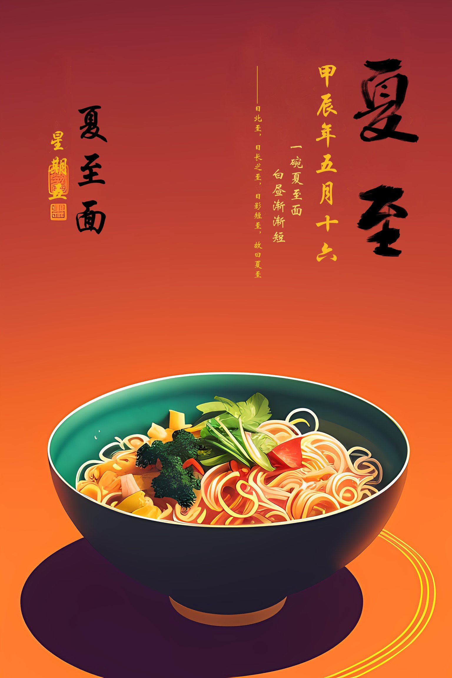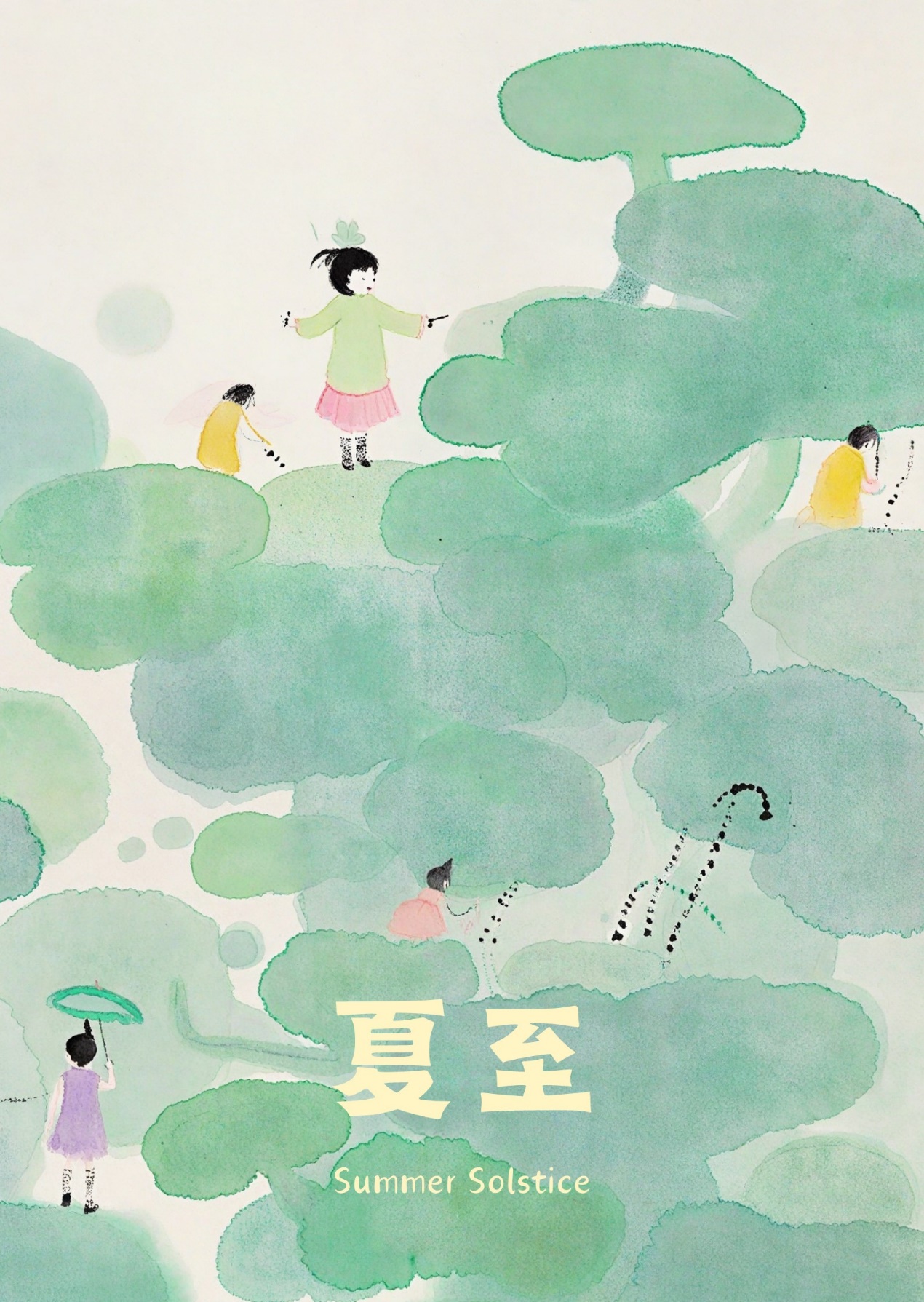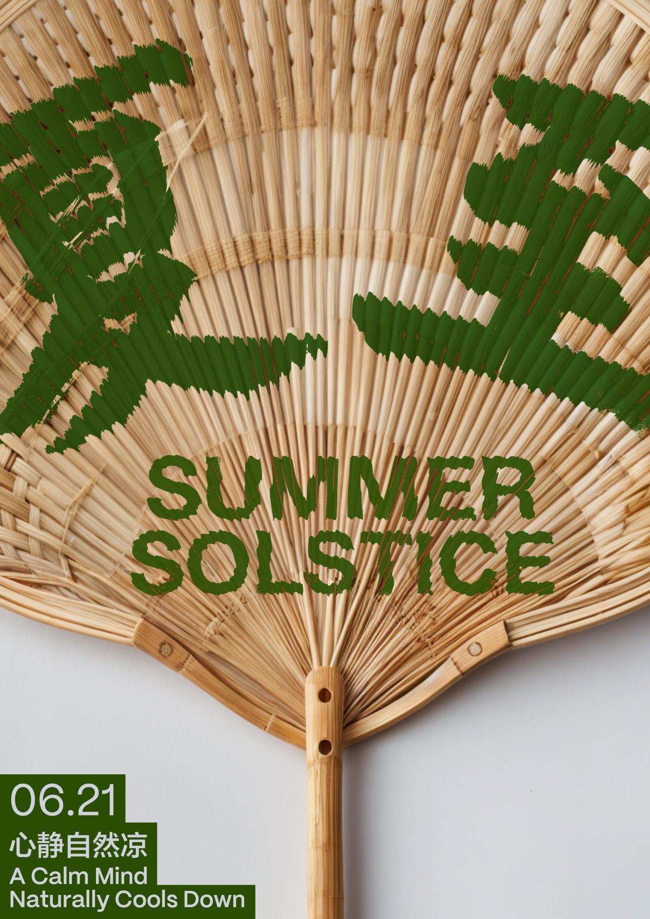 也有的创作者选择从古诗古画中汲取灵感。作品《夏至过东市二绝》引用宋代洪咨夔诗句,展现农家的夏至风光。在设计风格上,以仿古宣纸为底,用浓淡不一的墨色与颜彩,勾勒出诗中质朴的田园意境;通过色块和点线的结合,配以书法字体,以诗入画,阐释节气与中国古代农耕文明千丝万缕的联系。
