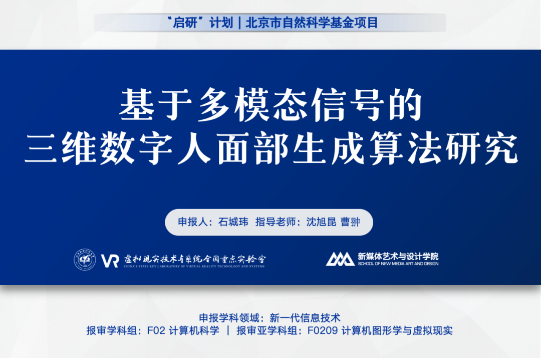 近日,我校凯发k8 沈旭昆教授、曹翀副教授指导的22级本科生石城玮的科研项目“基于多模态信号的三维数字人面部生成算法研究”通过基金委评审,获得了2024年度北京市自然科学基金本科生基础研究项目资助。