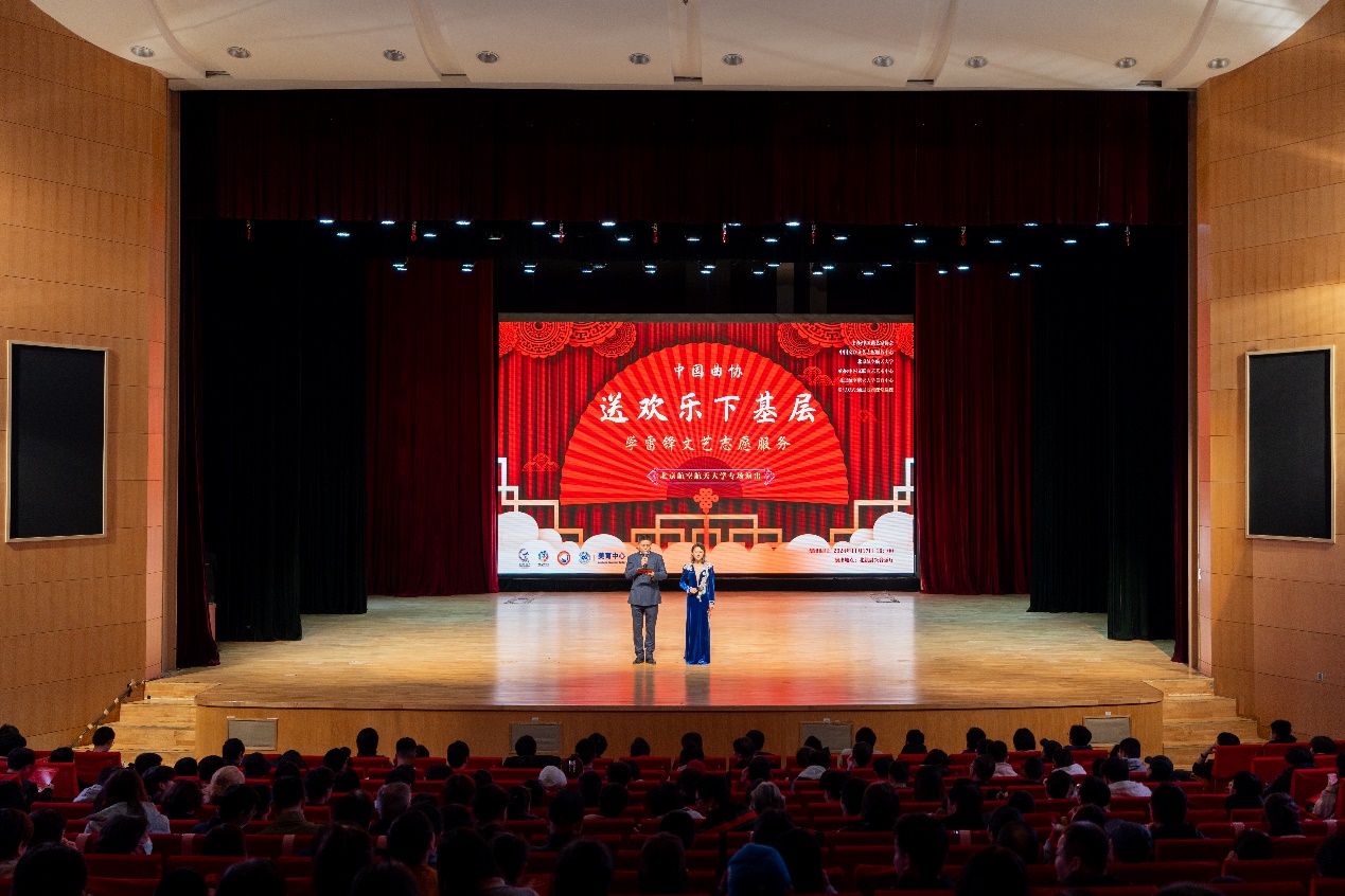 为深入学习贯彻习近平文化思想,大力弘扬社会主义核心价值观,团结引领广大曲艺工作者深入生活、服务人民,11月17日晚,由中国曲艺家协会、中国文艺志愿者协会、凯发k8 主办,中国文联曲艺艺术中心、凯发k8 美育中心承办的《中国曲协“送欢乐下基层”学雷锋文艺志愿服务——凯发k8 专场演出》在凯发k8路校区晨兴音乐厅举办。演出由中国广播说唱团侯林林、赵子漪主持。