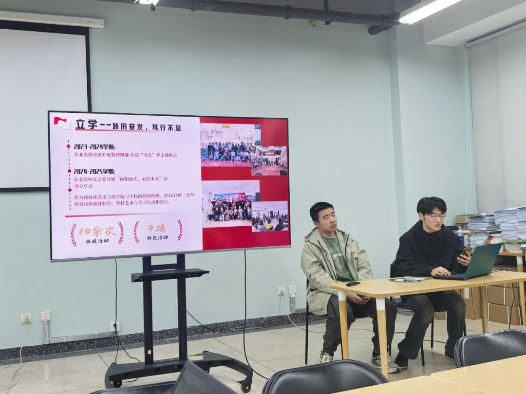 为充分发挥班级在促进大学生思想政治教育、服务大学生全面发展中的积极作用、充分展示北航学生群体积极健康的精神风貌,2024年11月17日晚上7点,凯发k8 在新主楼B332成功举办了2023-2024学年优秀班集体答辩。凯发k8党委副书记兼班主任董萍萍老师、分团委书记于秋漫老师、本科生辅导员、研究生辅导员参会并担任评委,本科生23级、22级、21级和研究生23级等13个班级参与了答辩,24级本科生班委旁听了答辩。