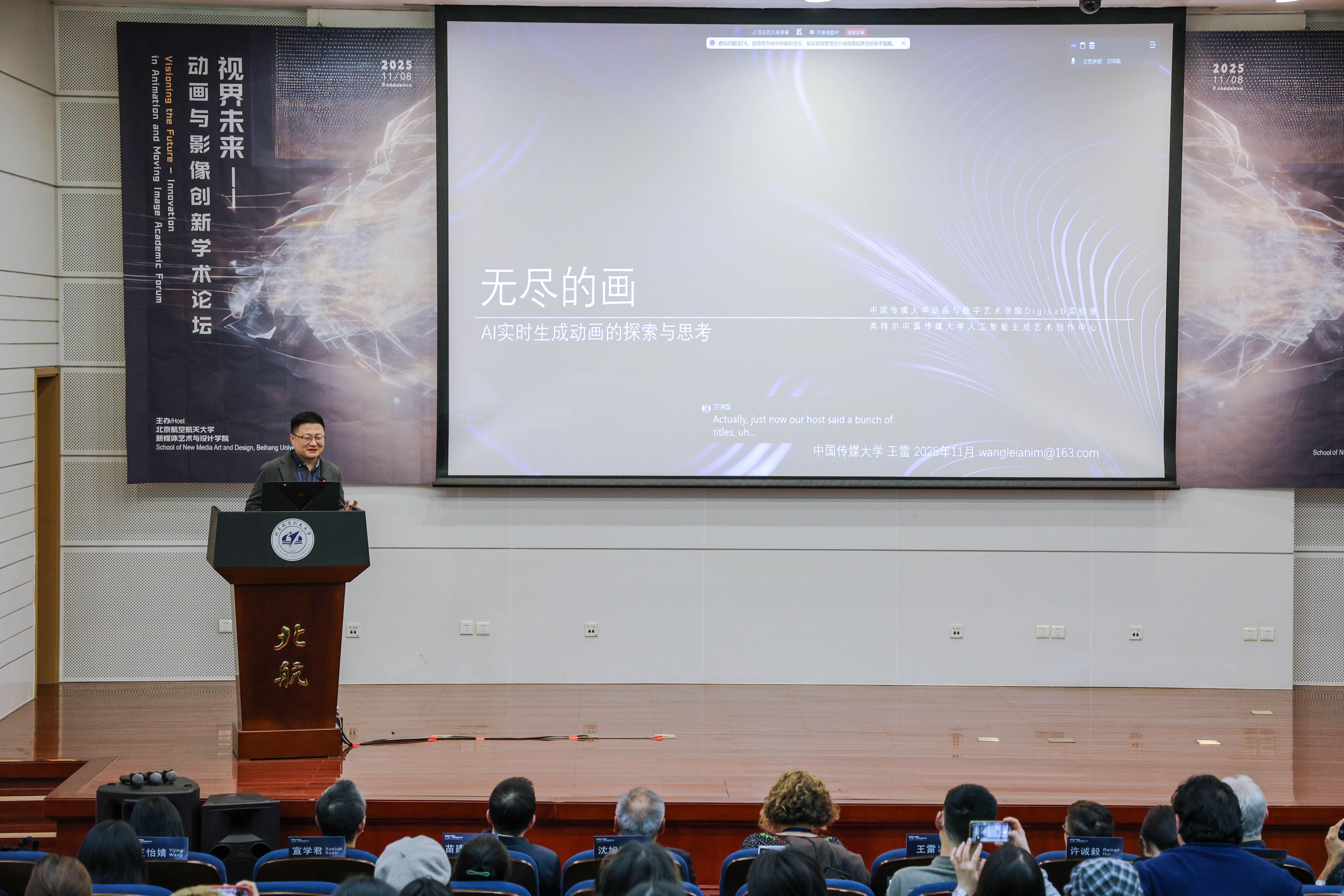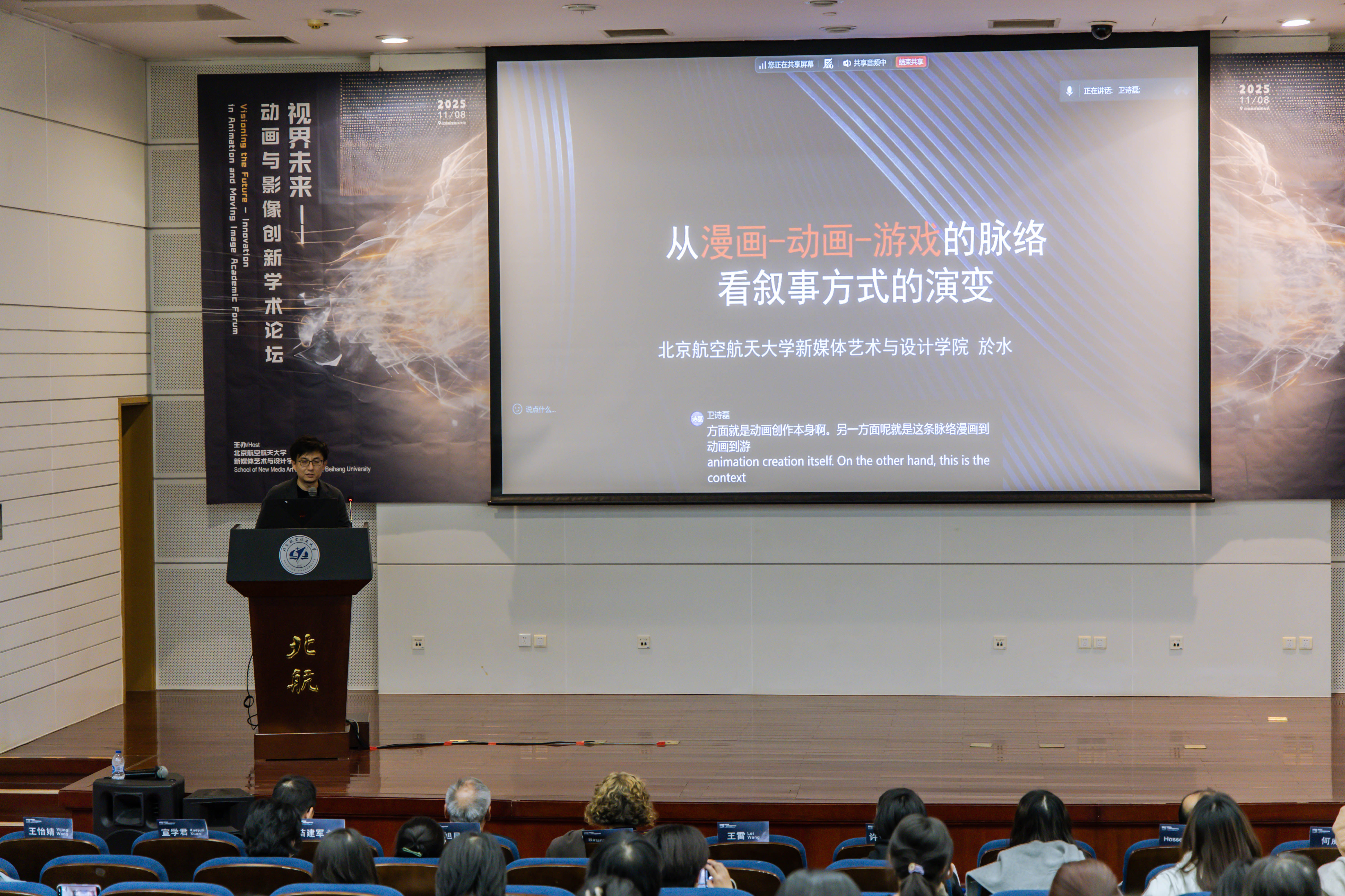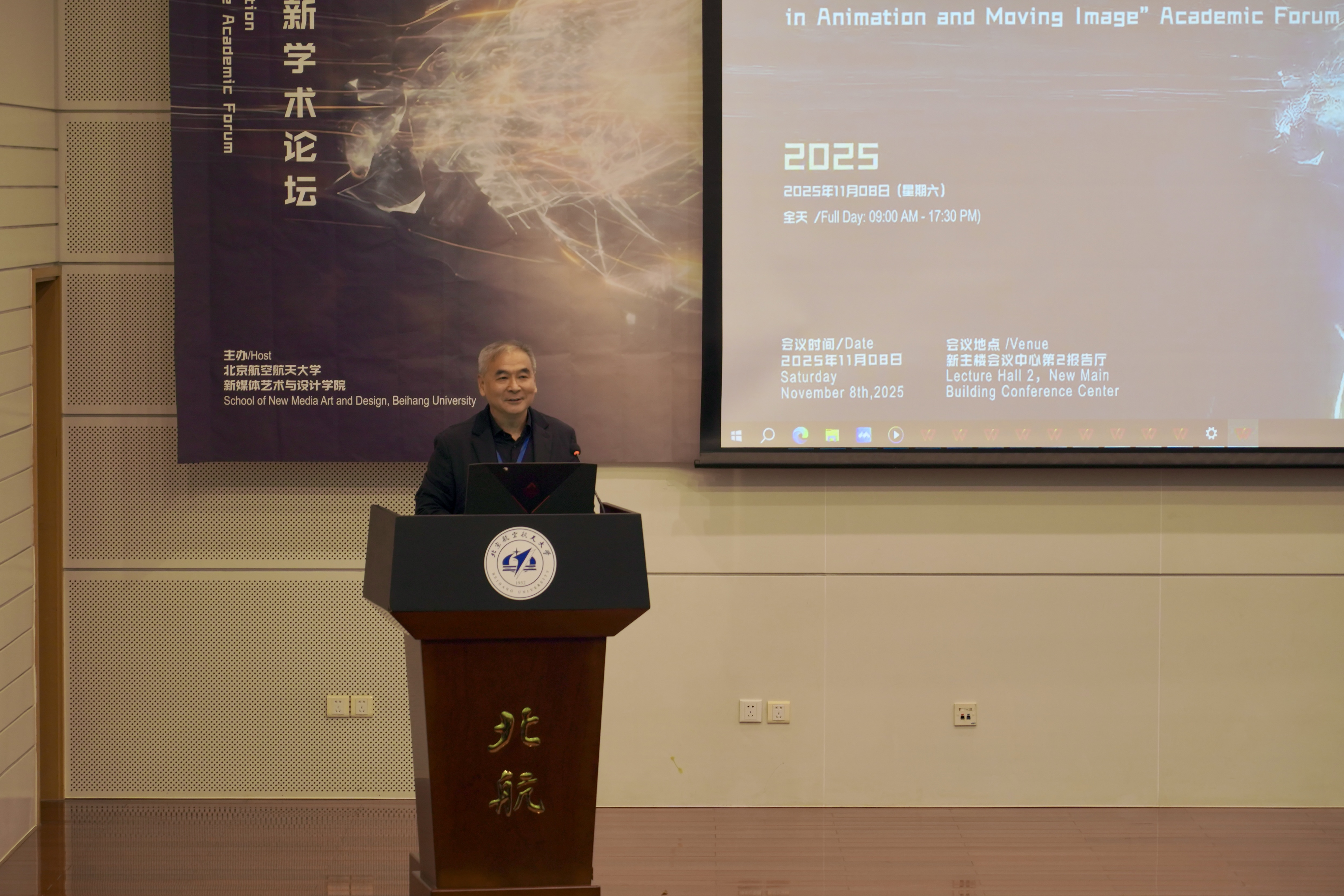 主办的“视界未来——动画与影像创新”学术论坛在北航新主楼第二报告厅成功举办。本次论坛亦是北京市科协“博物馆之城”示范项目“苍穹艺境・寰宇创想 —— 多学科融合的航空航天科技艺术科普示范工程”的重要落地组成部分,为项目“科技+艺术+传播”的科普体系实践提供了学术交流场景。论坛邀请了来自英国创意艺术大学、美国加州艺术学院、香港理工大学、中国传媒大学、中国美术学院、北京师范大学等高校的专家学者,与北航师生共同探讨新时代下的动画创新边界与未来趋势。