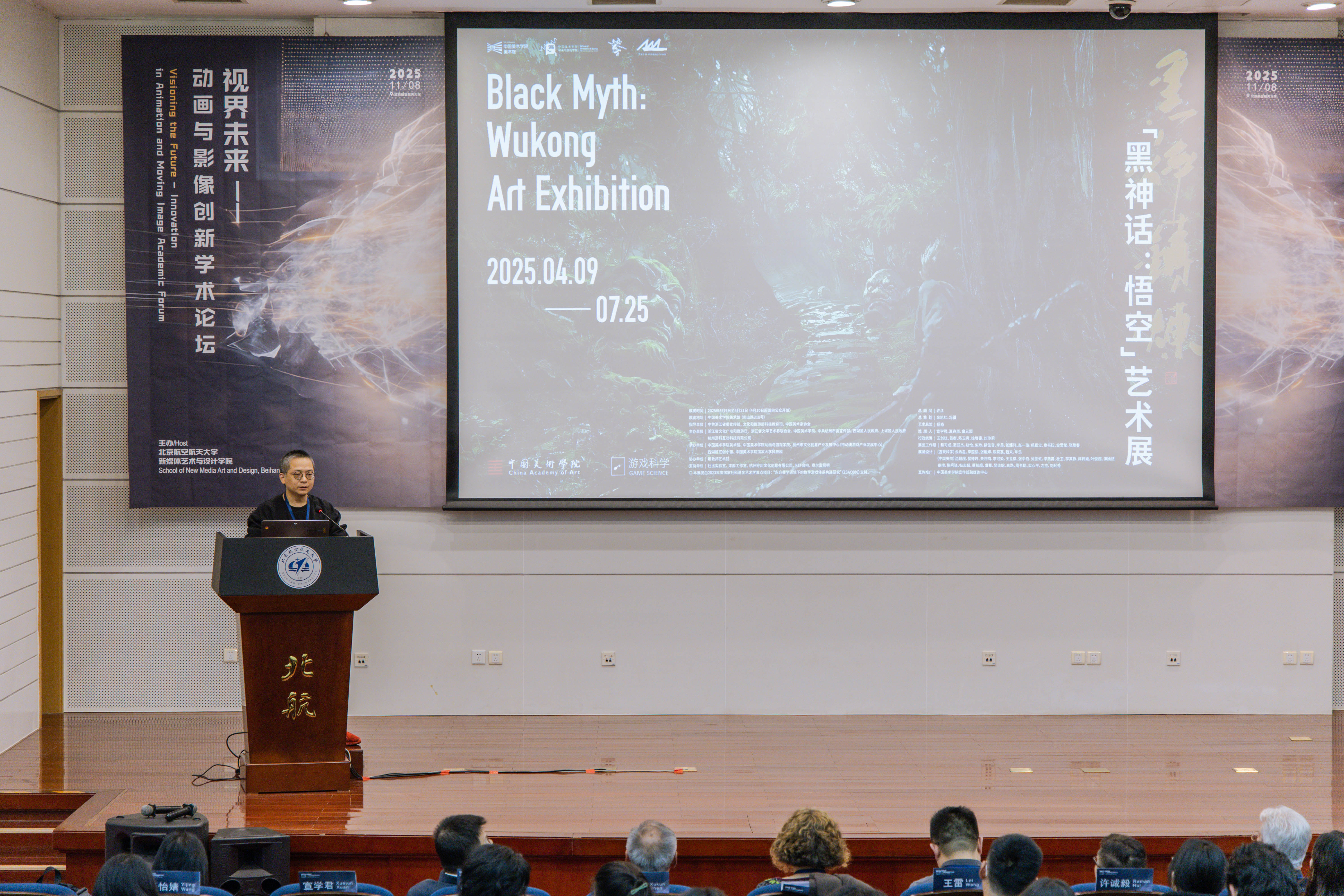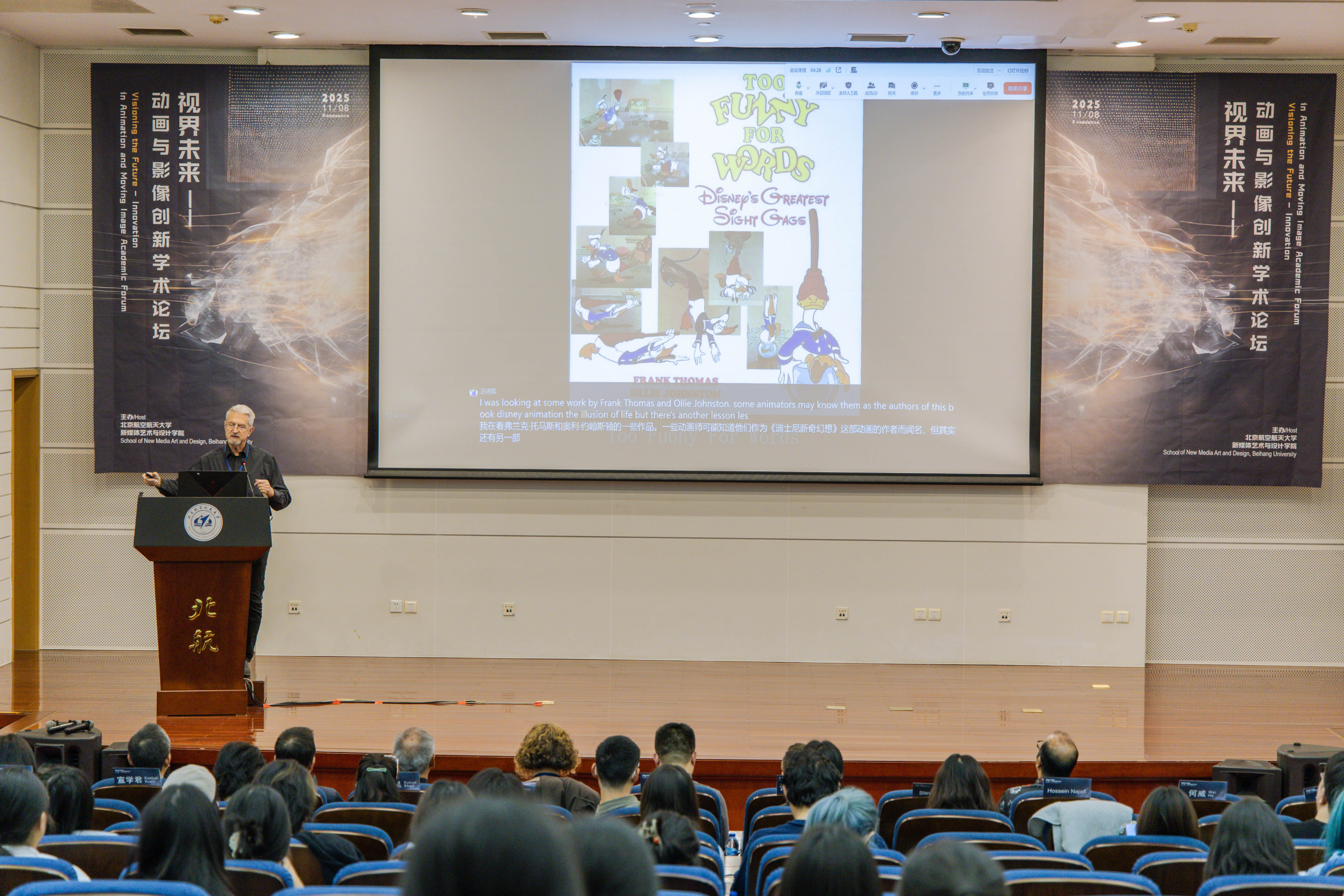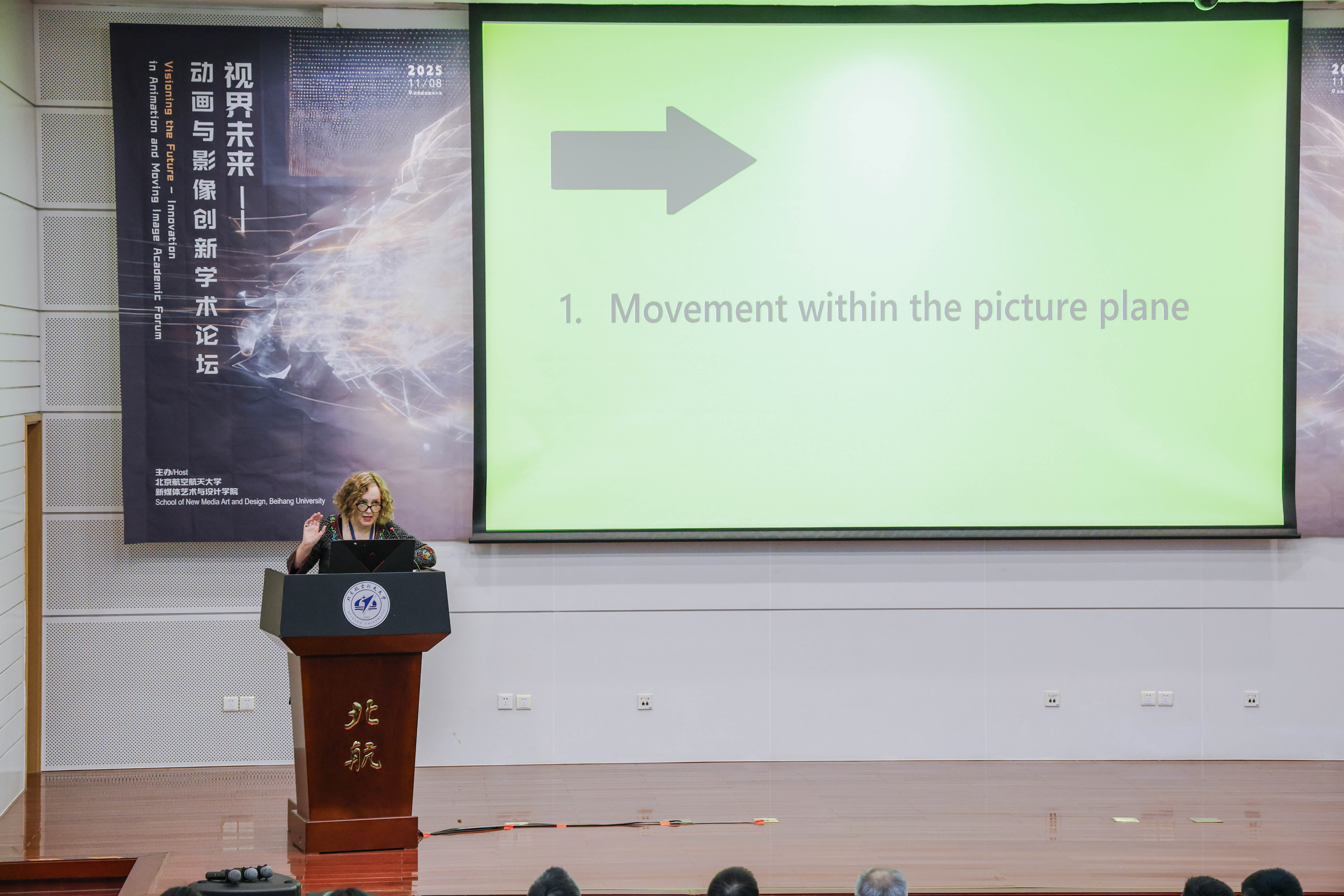 主办的“视界未来——动画与影像创新”学术论坛在北航新主楼第二报告厅成功举办。本次论坛亦是北京市科协“博物馆之城”示范项目“苍穹艺境・寰宇创想 —— 多学科融合的航空航天科技艺术科普示范工程”的重要落地组成部分,为项目“科技+艺术+传播”的科普体系实践提供了学术交流场景。论坛邀请了来自英国创意艺术大学、美国加州艺术学院、香港理工大学、中国传媒大学、中国美术学院、北京师范大学等高校的专家学者,与北航师生共同探讨新时代下的动画创新边界与未来趋势。