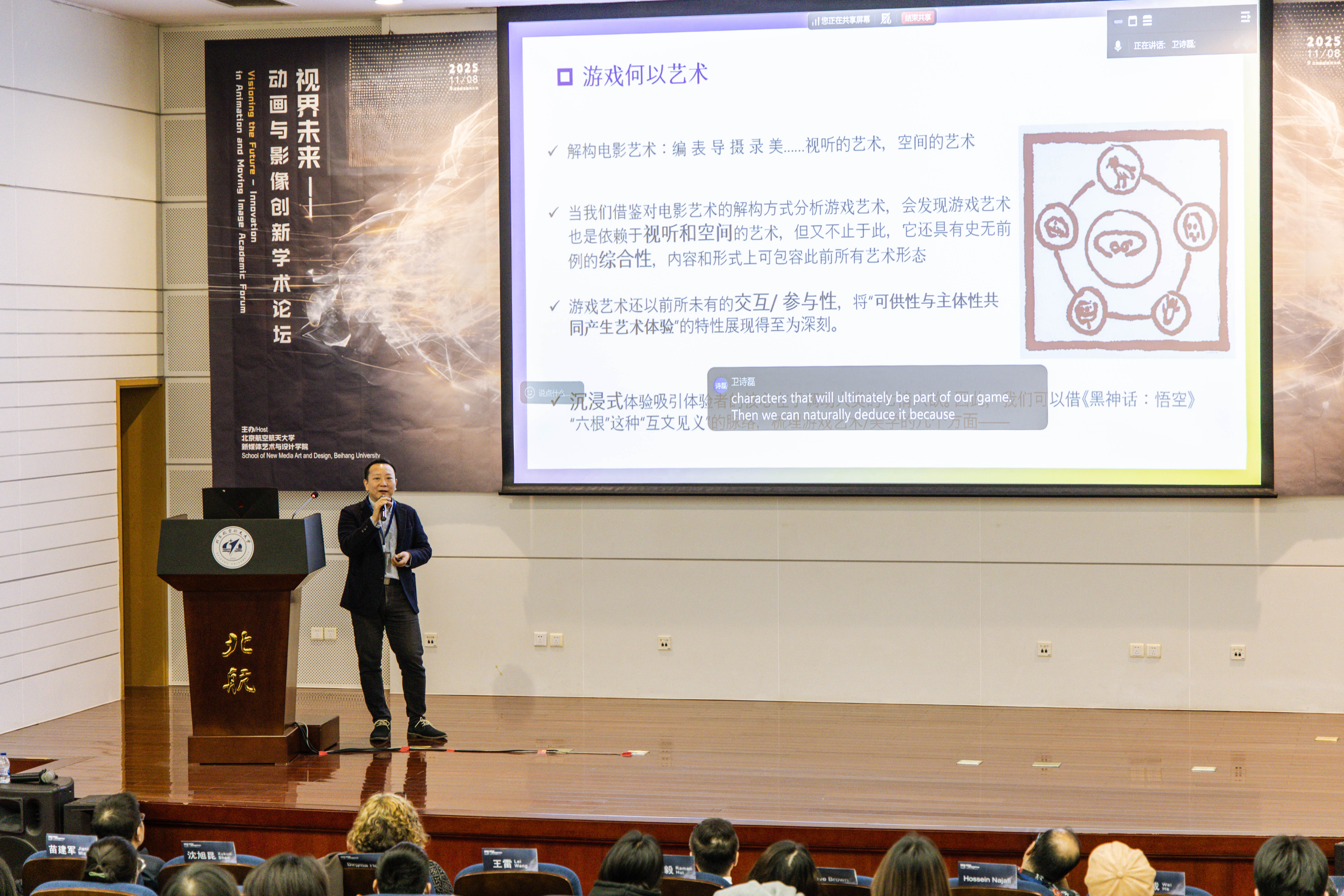 的於水教授带来的《从漫画-动画-游戏的脉络看叙事方式的演变》,提出了作为创作者,选择何种媒介进行表达,不仅关乎形式,更需要深入理解并发掘每种媒介所蕴含的叙事逻辑与表达方法。
