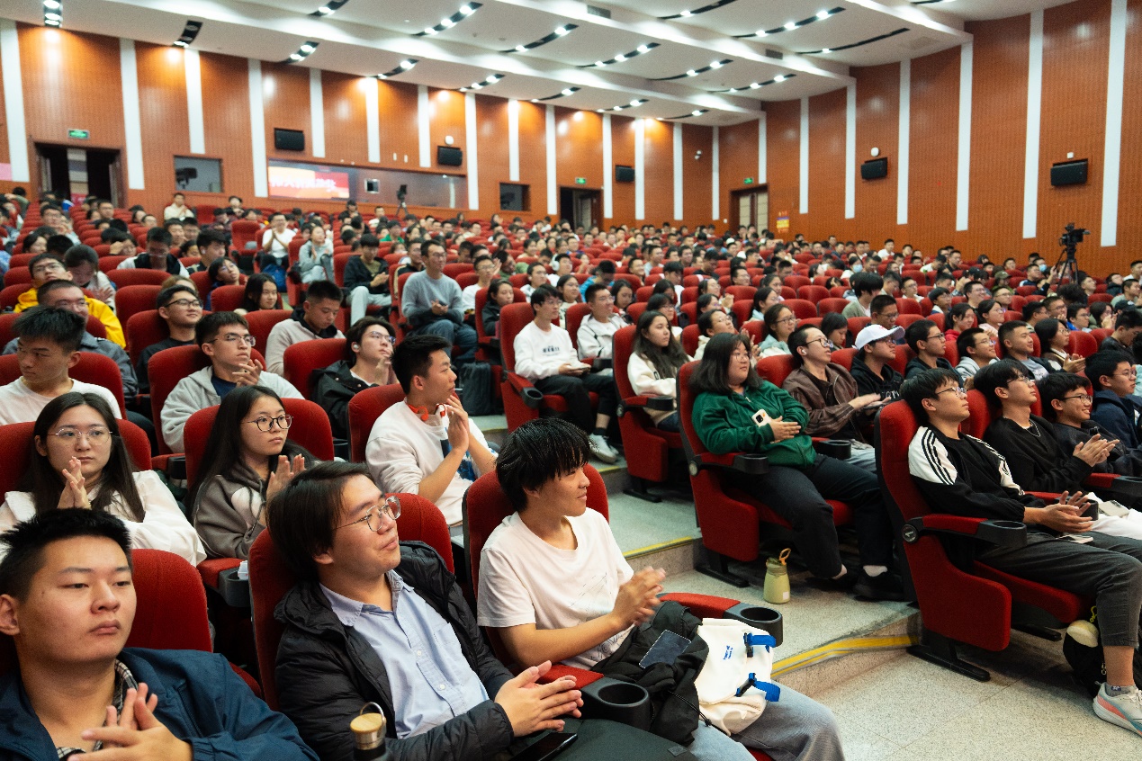 讲座结束后,宋泽惠为阮余群赠送北航特色纪念品。现场400余名师生聆听了讲座。