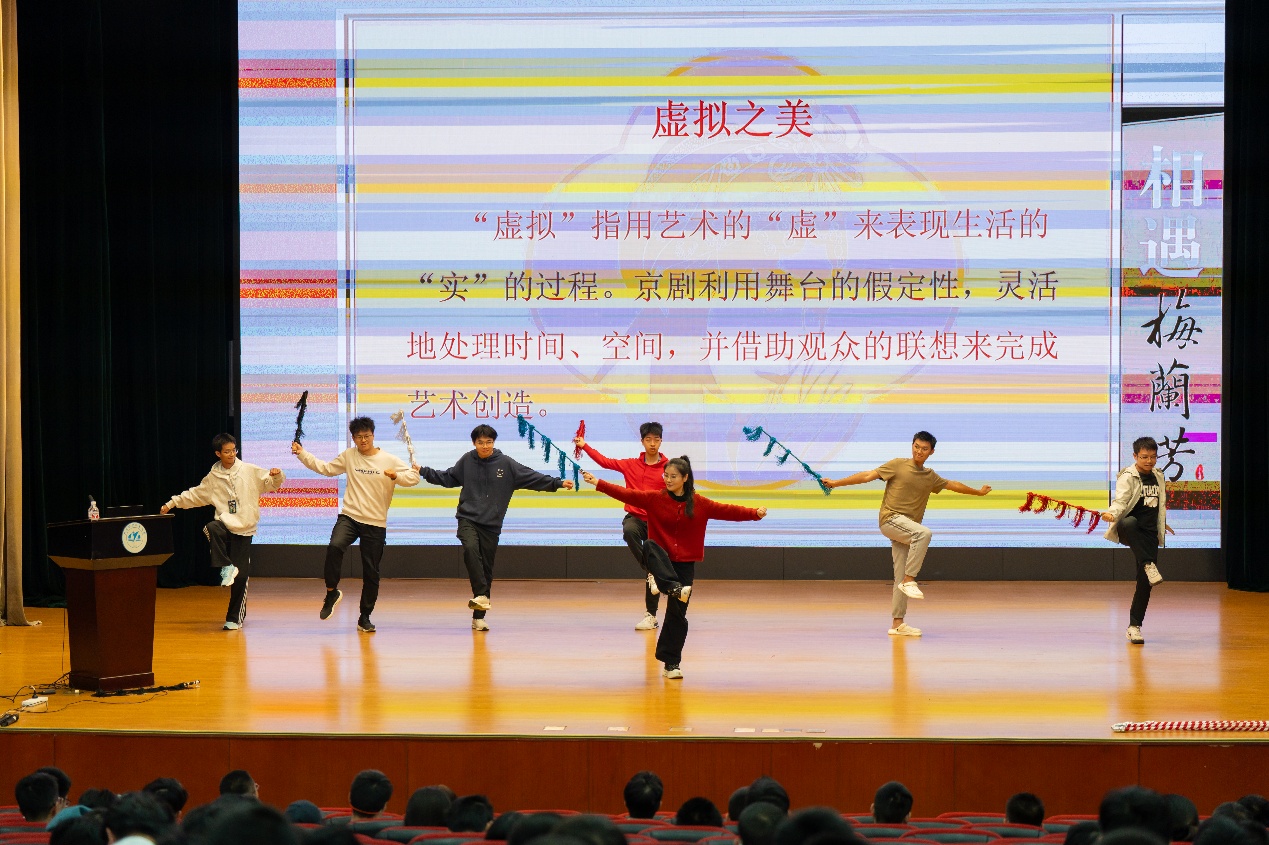 “戏曲进校园”北京高校之旅,以讲座为主要形式,辅以演出、展览参观、沉浸体验等多重形式,以“知戏,感戏,听戏,看戏”的理念,让高校学子了解戏曲,走进戏曲。张瑜结合梅兰芳先生的表演作品,讲解了京剧生、旦、净、丑各行当特点,京剧的四功五法以及梅兰芳生平等。