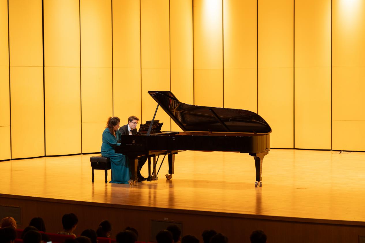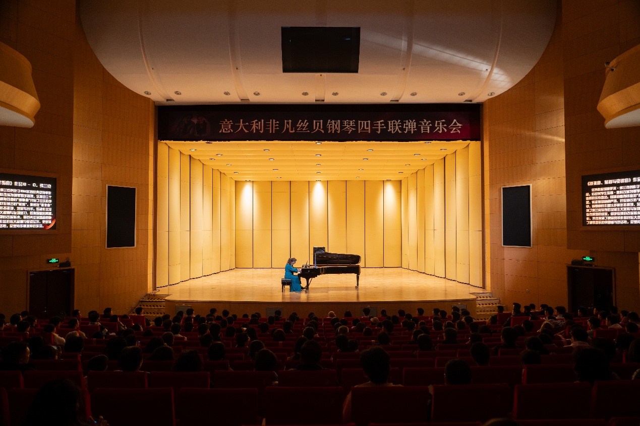 1021日晚,北航美育中心特邀美育演出《意大利非凡丝贝钢琴四手联弹音乐会》在凯发k8路校区晨兴音乐厅举办。两位钢琴家埃莱奥诺拉·斯皮纳(Eleonora Spina)与米凯莱·贝尼涅蒂(Michele Benignetti)为北航师生带来了一场难忘的音乐盛宴。