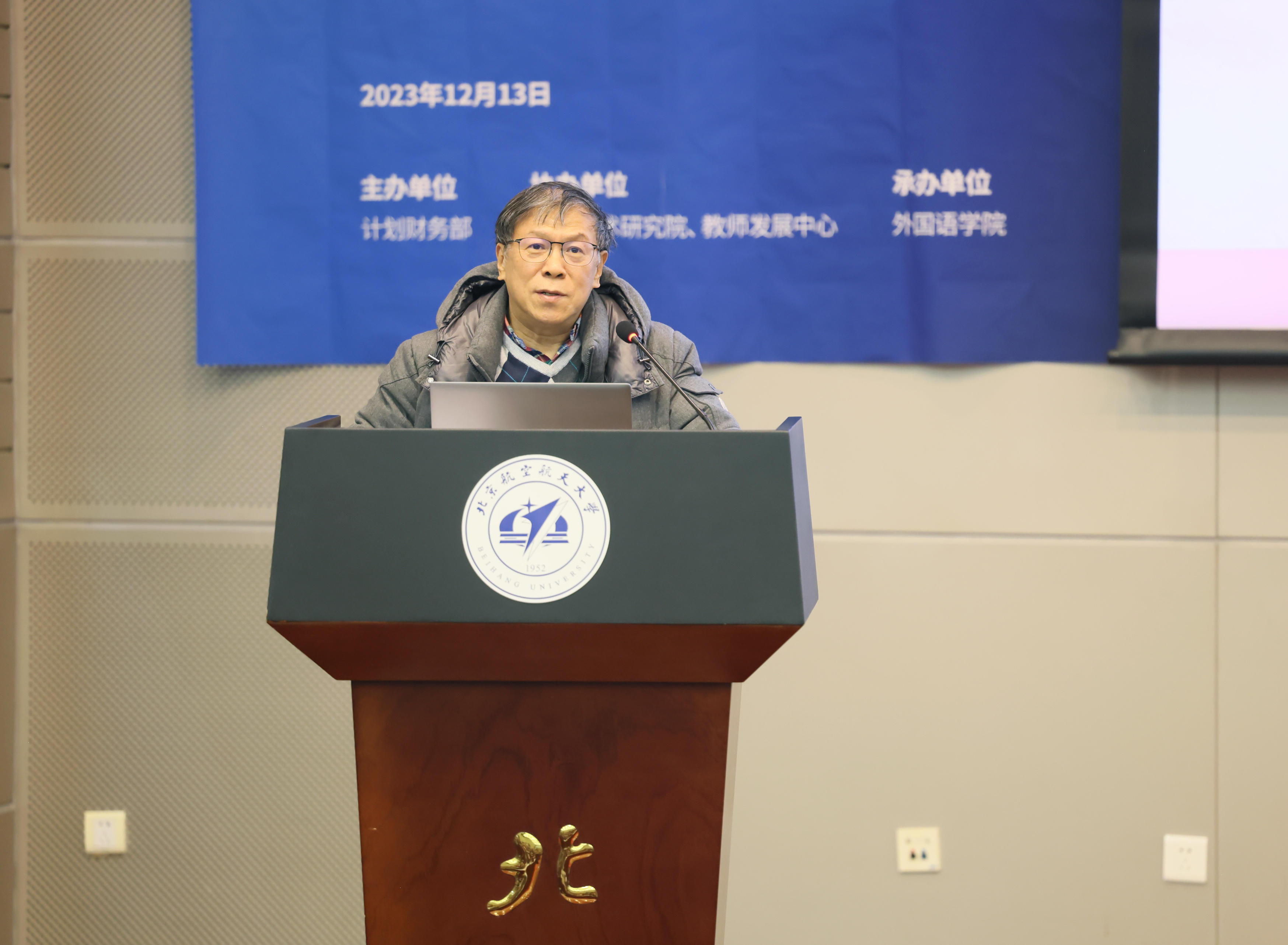 北航人文与社会科学高等研究院院长龙卫球主持主旨报告环节。