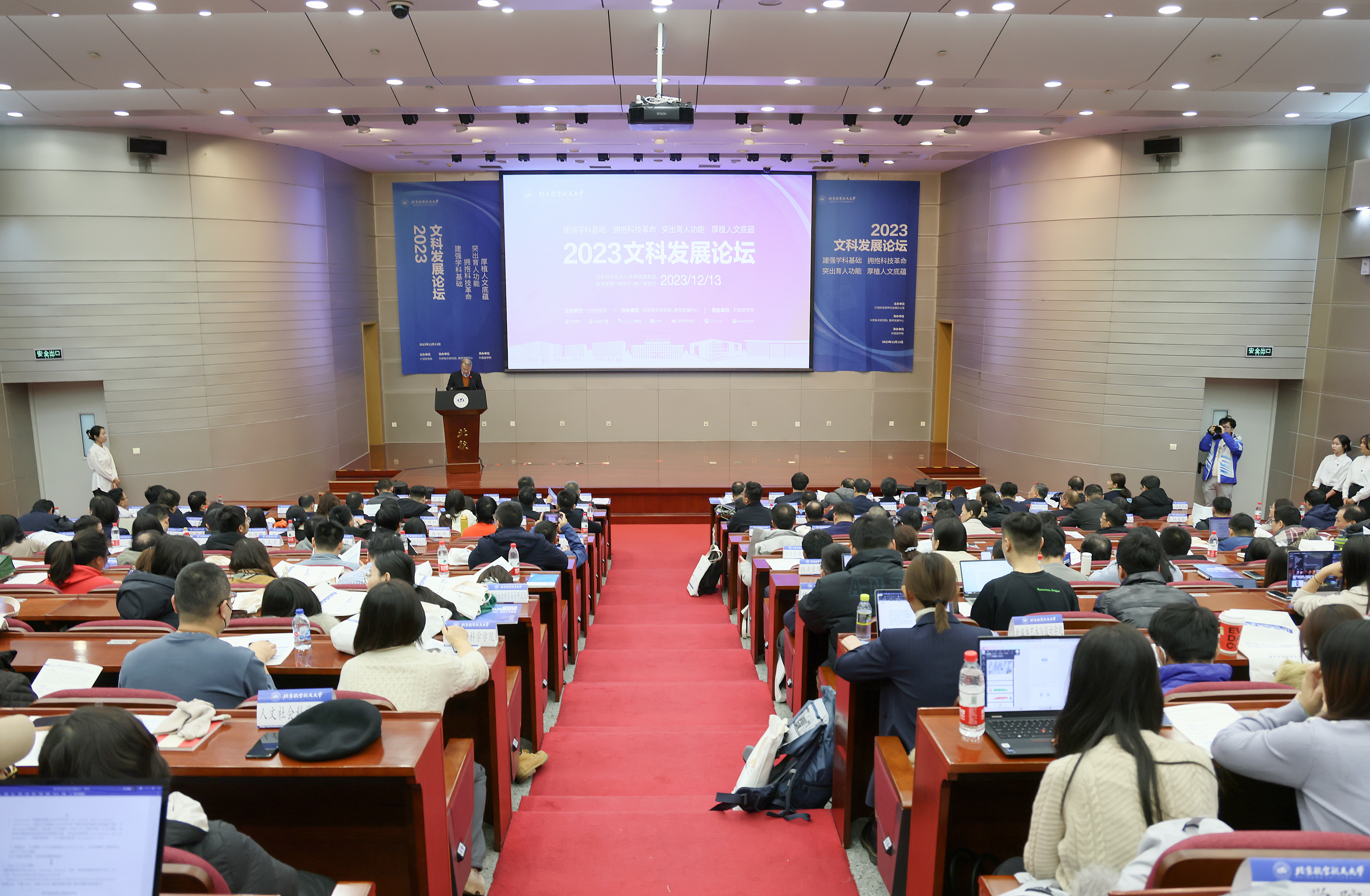 2023年文科发展论坛在新主楼会议中心报告厅举行。校党委书记赵长禄,副校长刘树春、张海兰、黄海军,党委副书记程波出席论坛。会议特邀中国人民大学副校长王轶,及清华大学、北京师范大学、中国政法大学、中国科凯发k8大学、中国教育发展战略学会等兄弟高校及研究机构专家学者出席论坛。论坛由黄海军主持。北航党政机关和服务支撑机构负责人、文科群凯发k8和相关凯发k8班子成员及师生代表、部分工科凯发k8代表共500余人参会。