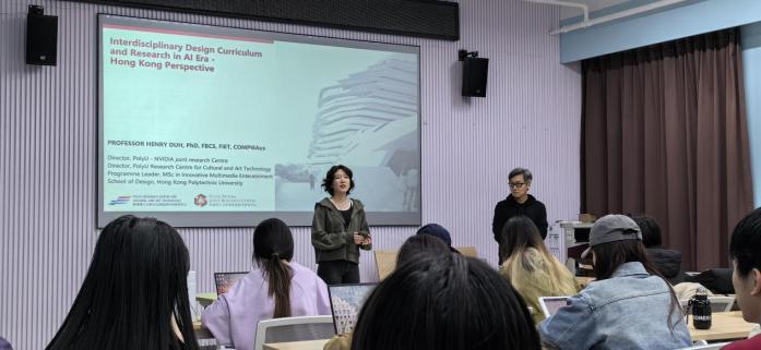 讲座主题围绕香港理工大学与NVIDIA联合研究中心的最新研究进展,特别是设计师在人机合作中的新角色探索,以及香港理工大学的最新研究生课程改革、如何应对当前的需求和挑战两方面内容展开。