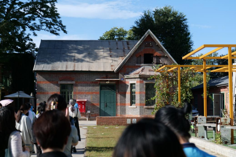 本科生联合党支部成员在光明里社区党委张书记和1897科创城王老师的带领下进行学习,参观该厂的铁路修建历史与红色革命历史,深刻学习领悟二七厂革命先辈坚定不移百折不挠的共产主义信念,学习敢闯敢干,敢于牺牲的大无畏革命精神,学习团结一致,奋力开创新局面的拼搏进取。大家在王老师的带领下先后参观了国家级百年建筑——法式建筑风格别墅六栋、比利时建筑风格别墅一栋。这些曾是外国工程师、公派留学生的居所,也是平汉铁路艺员养成所。它先后培养了近千名学员,为京汉铁路乃至全国铁路输送了众多高级技术和管理人才,这些建筑旧址是不仅是丰台区长辛店“二七”大罢工旧址之一,同时也展现出二七厂历史久远、文化气息浓厚的氛围。