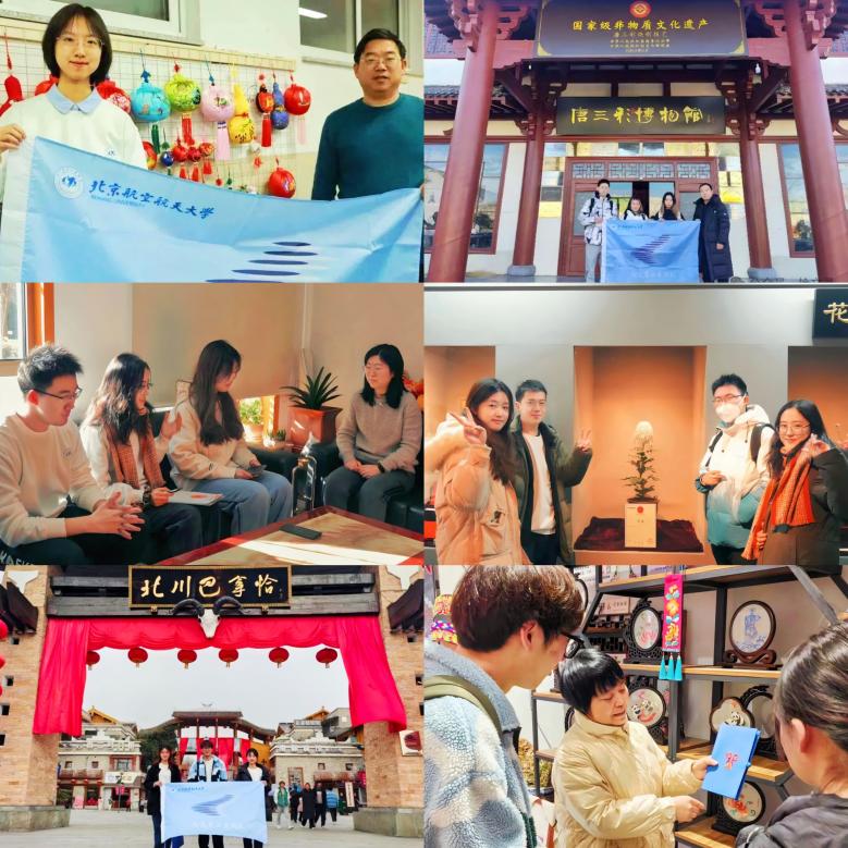 京津组主要调研内容有:天津——祥禾饽饽、杨柳青年画制作技艺;北京——“花儿金”绢花、“葡萄常”料器。在调研中,队员们既了解到了传统宫廷糕点和年画制作技艺传承过程中的创新思路,又见识到了东花市街道“社区博物馆”的新型非物质文化遗产特色保护方式。河南组的队员调研了河南省开封、洛阳两地的三项非遗:开封汴京灯笼张、洛阳宫灯与唐三彩。携手非遗传承人与文旅局工作人员共话非遗,探讨非遗发展新道路。辽宁组的队员就满族文化,开展了一系列调研活动。在辽宁丹东,队员们不仅了解了满族人民在过年期间的风俗习惯,更见识到顺应时代的满族荷包传承人不断尝试、守正创新的精神品质。在建设文化强国的春风中,赓续文化薪火,讲好非遗故事。甘肃组的队员在兰州文化馆与各非遗传习所的参观中,学习到非遗融入百姓生活的新思路,了解到非遗融入人们情感的新方式。四川组的队员们着眼于地方特色民族——羌族开展调研。在调研中深入了解羌族民俗、羌绣等项目,感受羌族独有的非遗之美。针对非遗与现代社会结合的新方式,学习当地传承创新工作的独到之处。