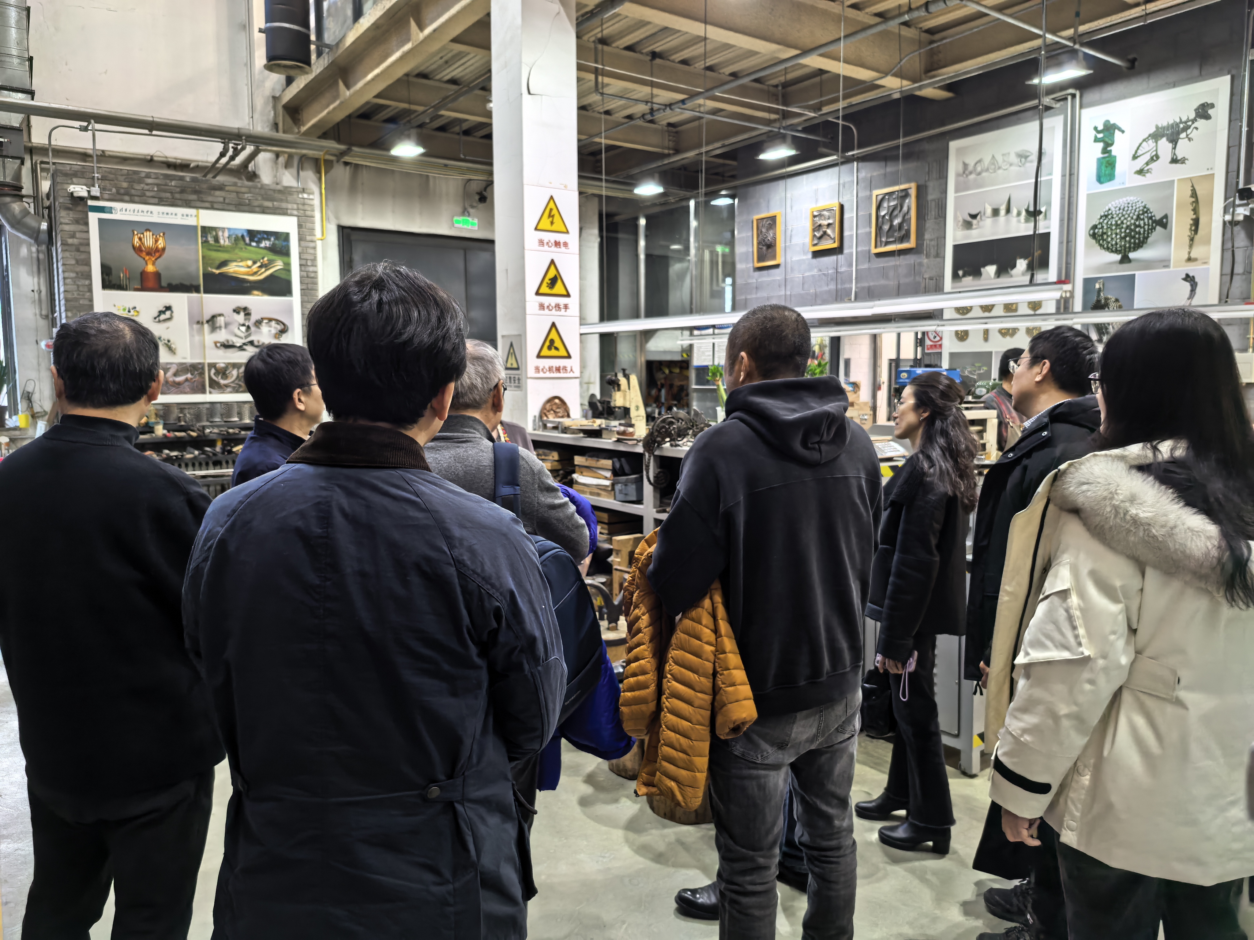 提供了宝贵的借鉴。座谈过程中,双方还在智能辅助设计、个性化定制、设计优化与预测、AI推动跨学科交叉融合、自动化与智能化等领域重点讨论了AI赋能设计学的路径探索。座谈结束后,在清华美院副院长董书兵的带领下,北航团队参观走访了清华美院各类艺术创作实验室。