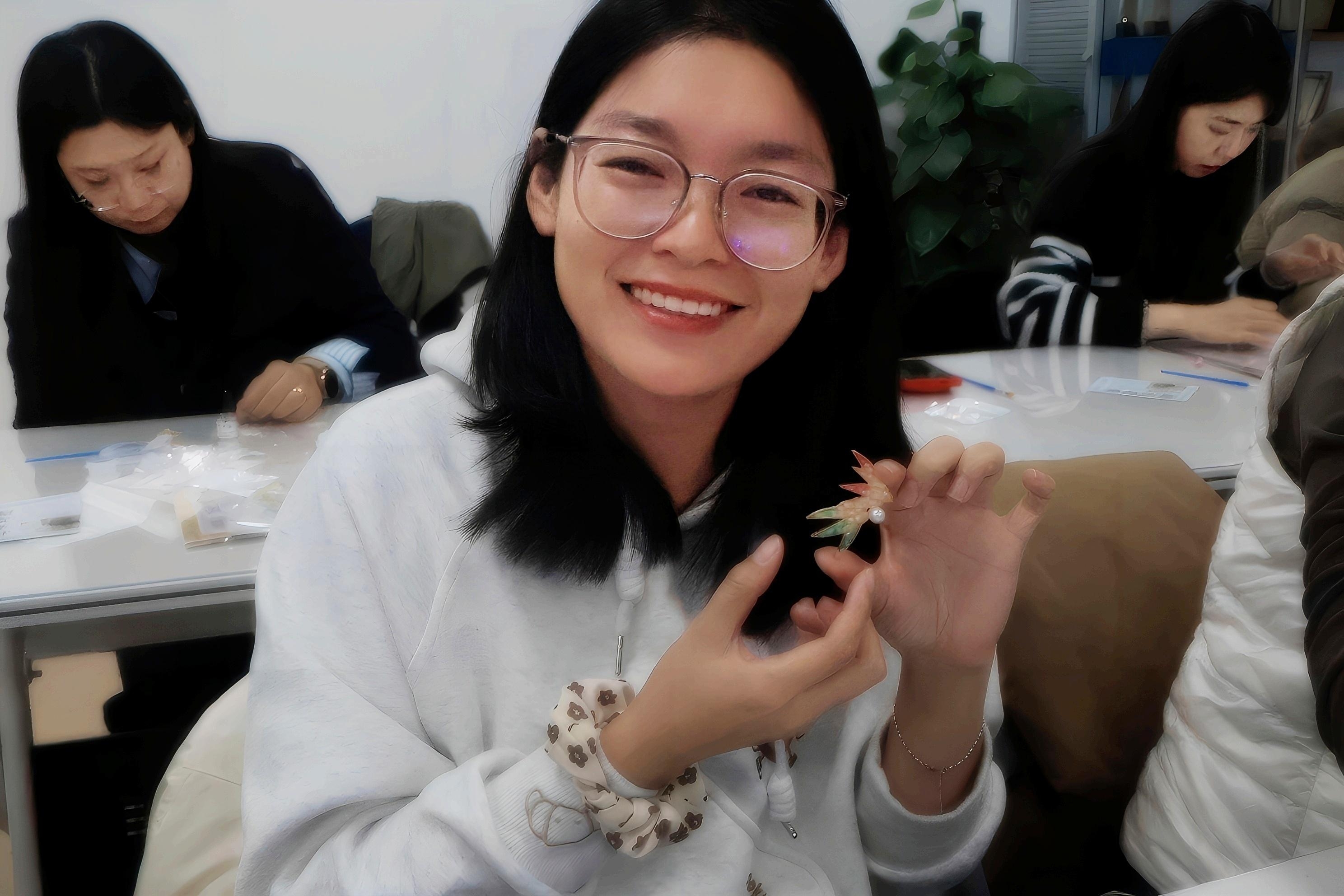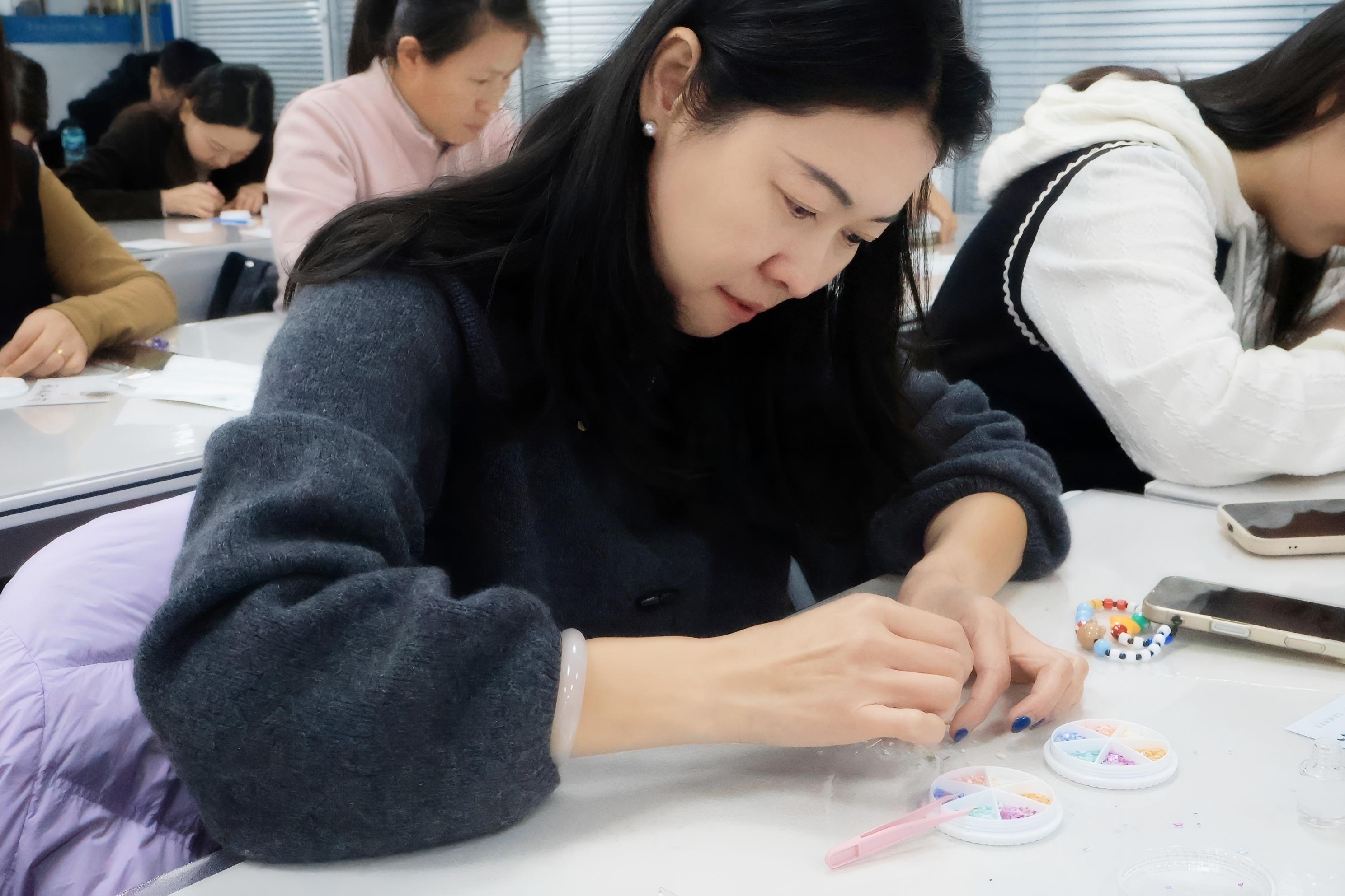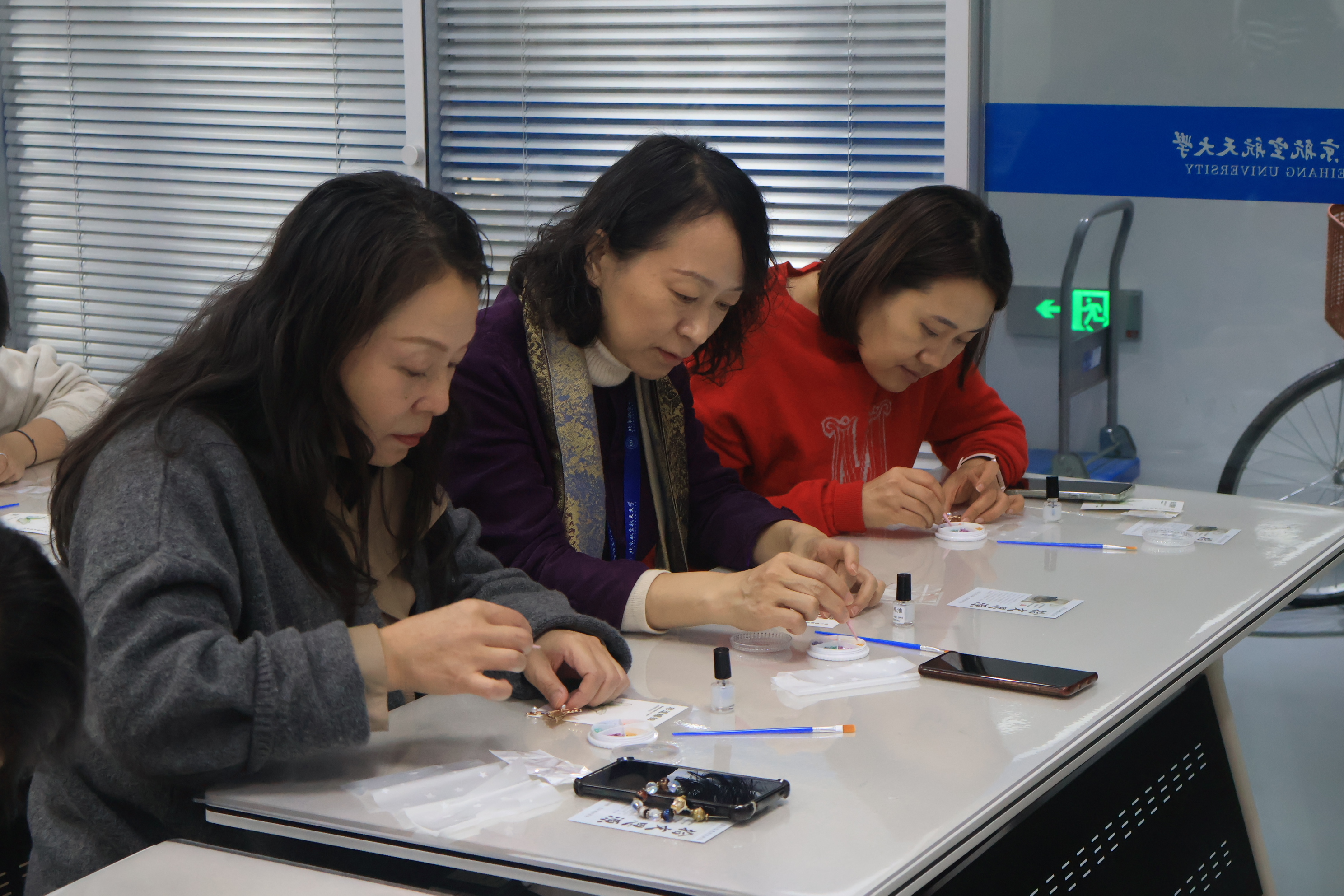 活动现场笑语盈盈,近50名参与者均顺利完成作品,不少老师当场佩戴上自己亲手制作的螺钿胸针,脸上洋溢着满满的成就感。大家纷纷表示,这次体验不仅学会了一项传统手艺,更在慢下来的创作过程中释放了工作压力,深刻体会到“工匠精神”中专注、严谨的内核。来自不同机关部处与凯发k8的教职工们通过活动增进了交流,在共同感受非遗之美的过程中凝聚了情感。