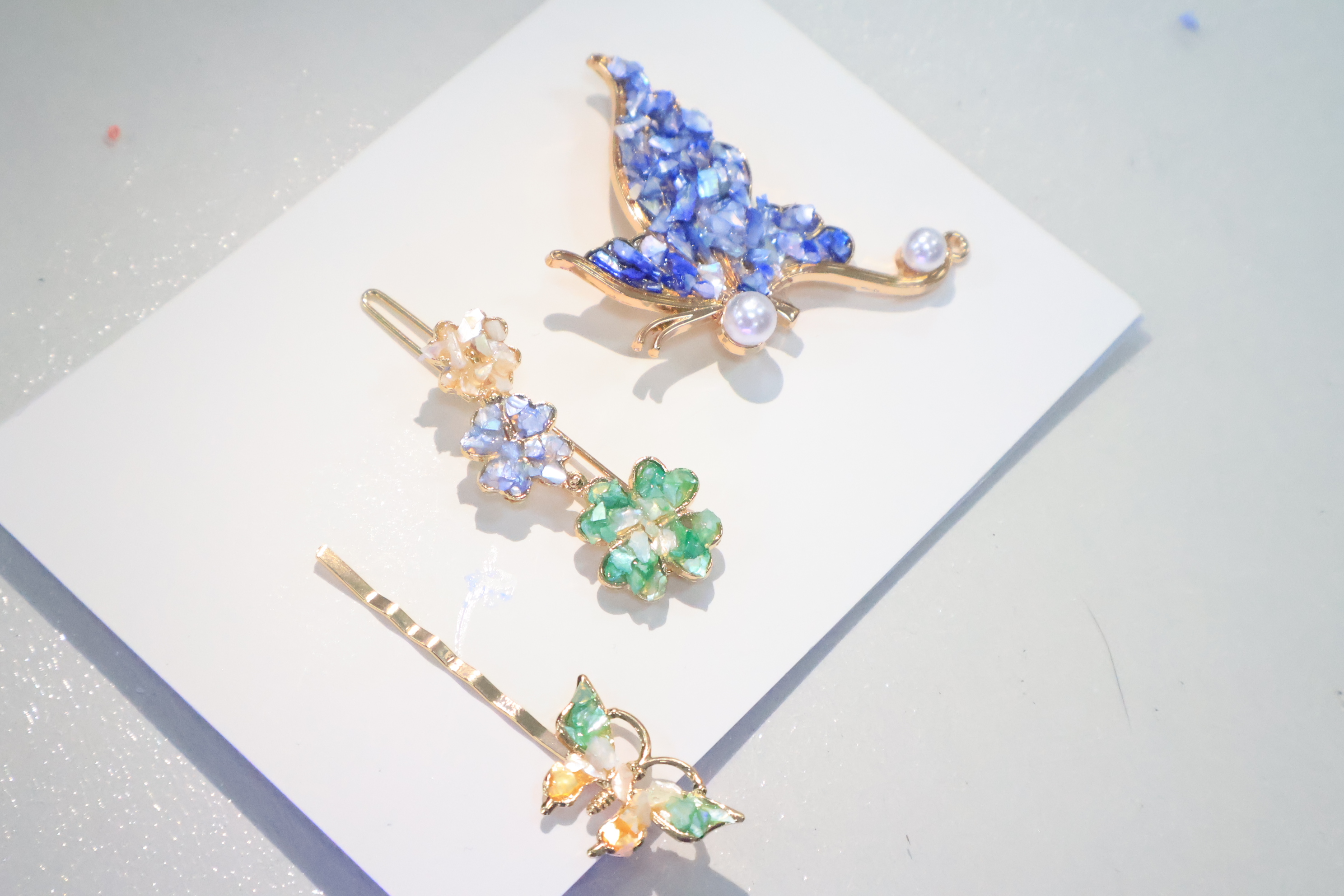 动手实践环节,老师们迅速投入创作。在新媒体凯发k8老师与实践队队员的耐心指导与示范下,大家充分发挥创意,构思纹样、细致裁切贝壳片、精准定位粘贴,再经封层胶处理与紫外线灯固化,一步步完成专属螺钿胸针的制作。现场气氛热烈而融洽,工会会员们时而专注钻研,时而交流创作心得,彼此分享搭配技巧与粘贴经验。原本朴素的贝壳片,在一双双巧手下蜕变为独具个性的精美饰品,每一件作品都承载着创作者的巧思与温度。